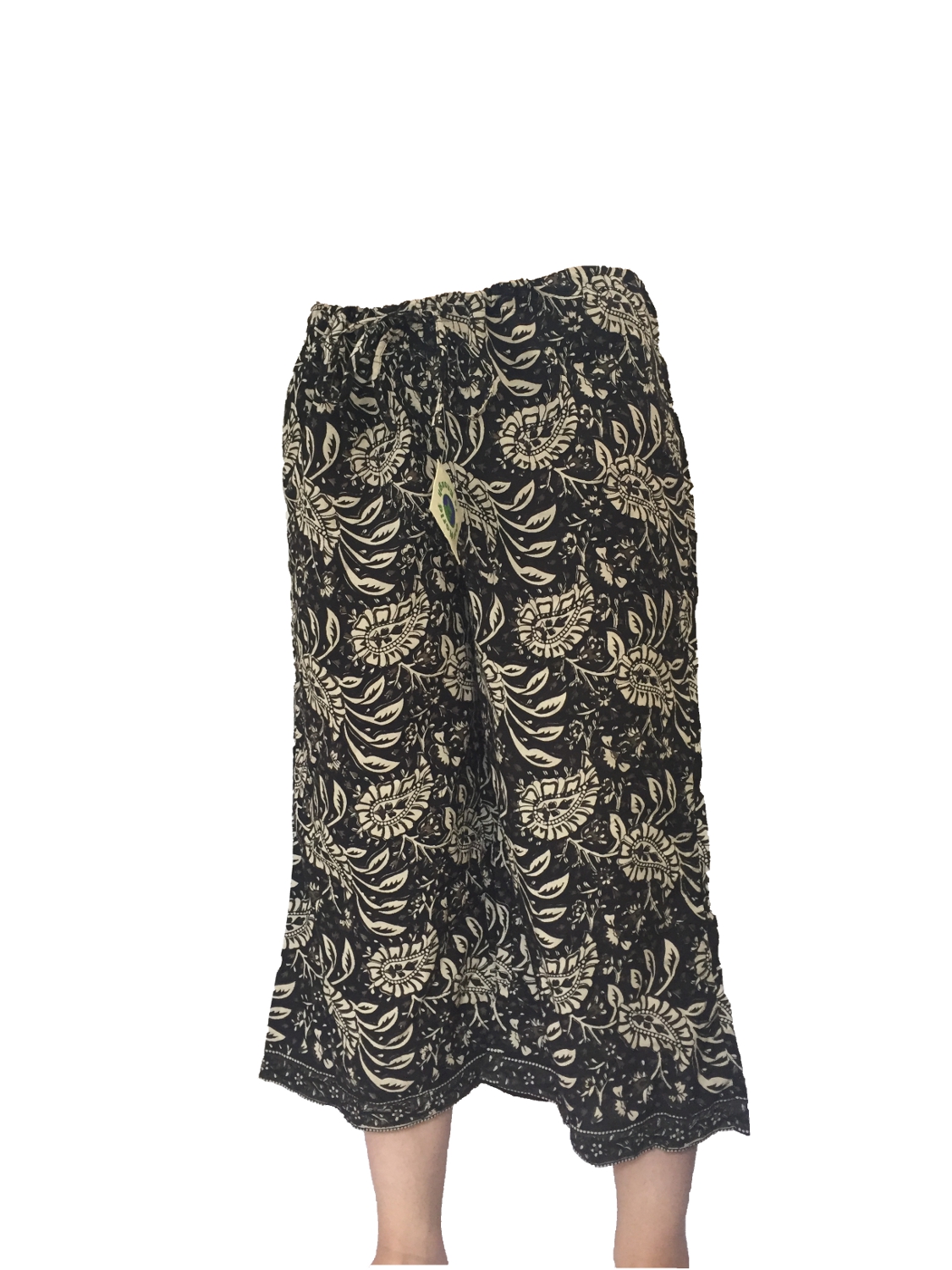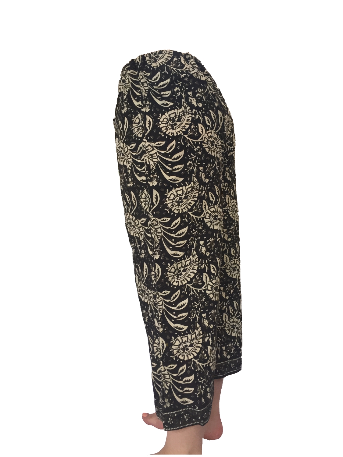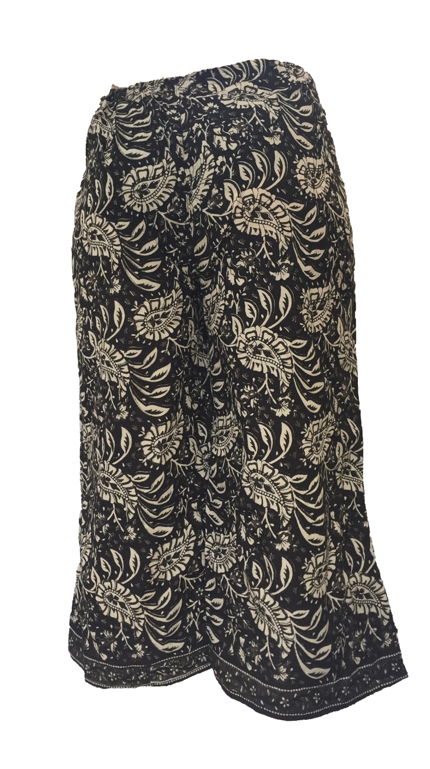 Fair Trade Black and Cream Print Drawstring Cropped 3/4 Length Trousers