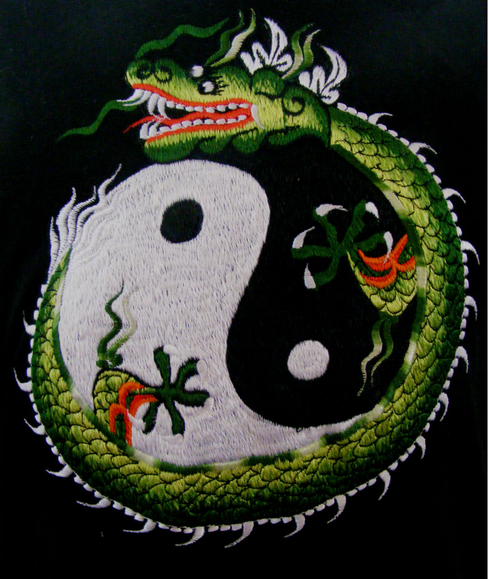 Tags: black, tibetan dragon, yin yang, embroidered t shirt, kathmandu
