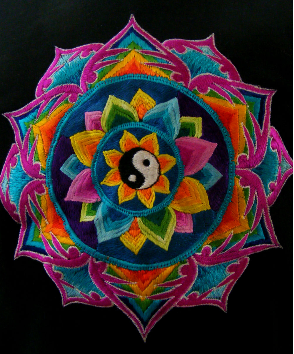 Fair Trade Embroidered Yin Yang Mandala T Shirt ( Black T Shirt)