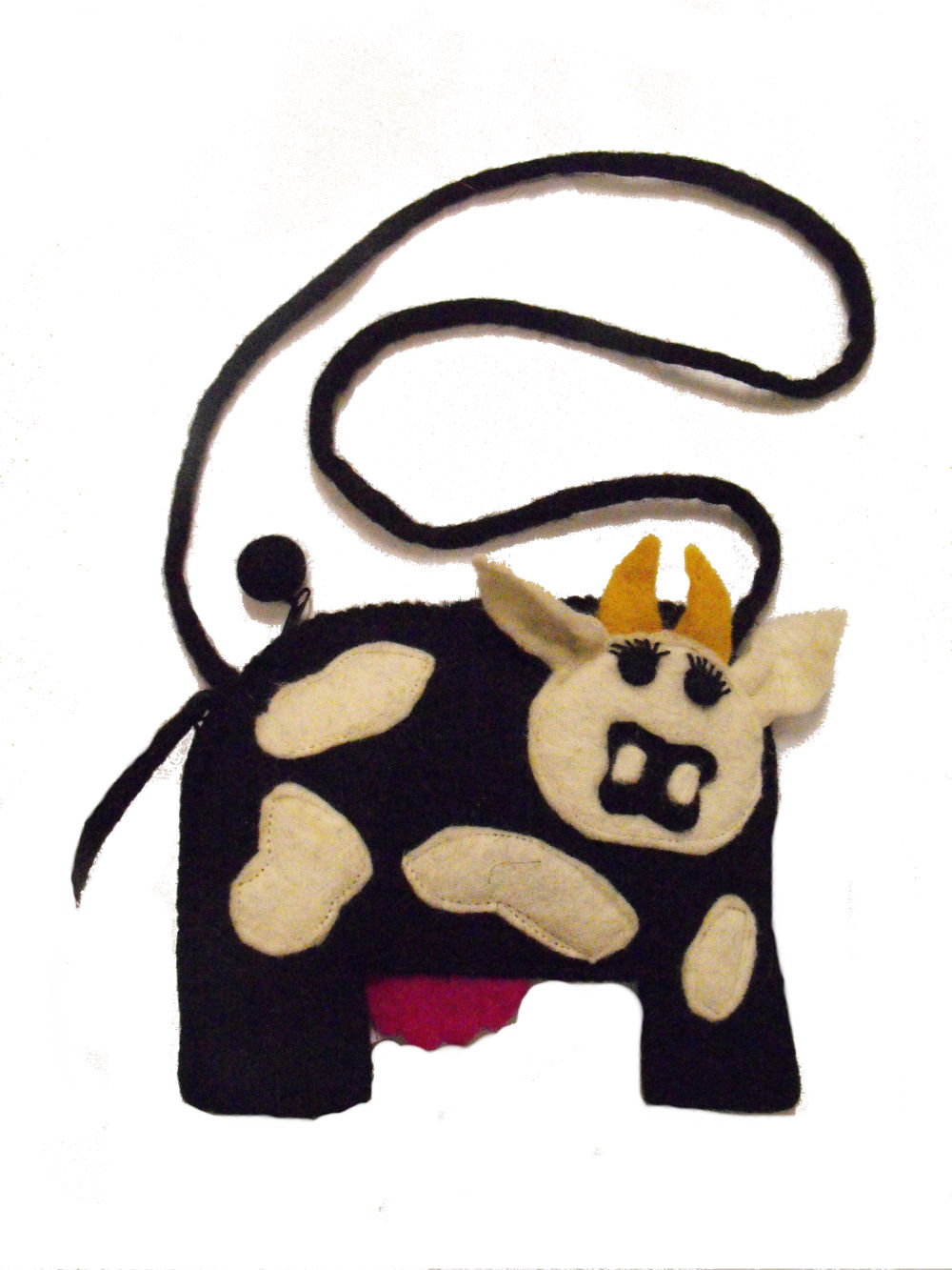 Handmade Felt Cute Cow shoulder bag - fully lined - Perfect for kids - Fairtrade