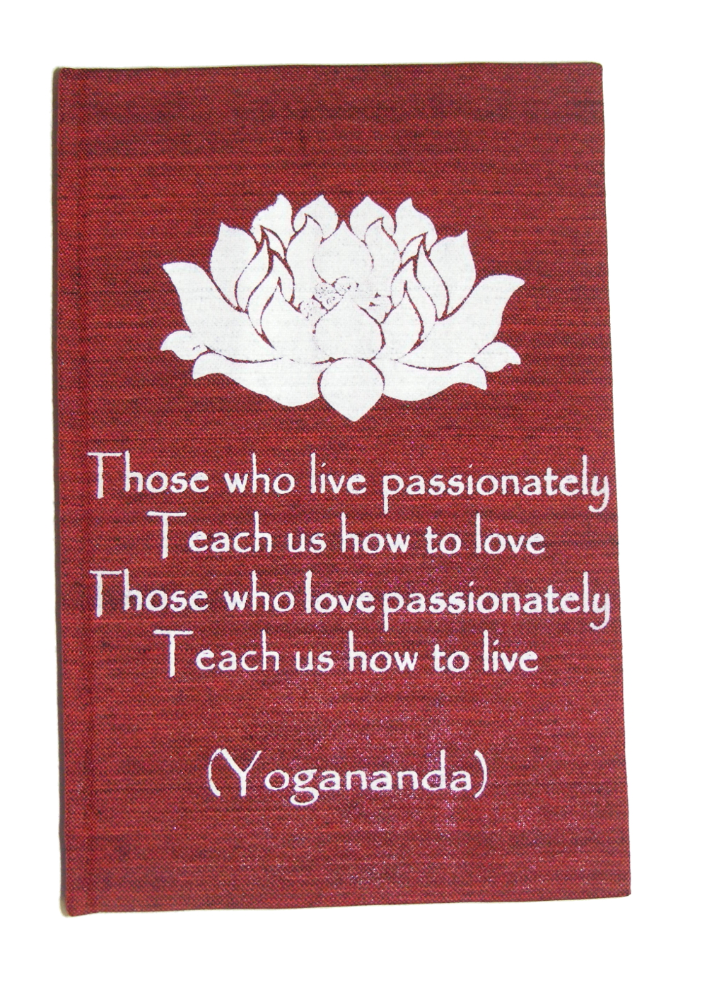 These wise words by the Indian Guru Yogananda together with the lotus flower, symbol of enlightenment and rebirth provide a powerful affirmation of your values on the cover of our new notebook.